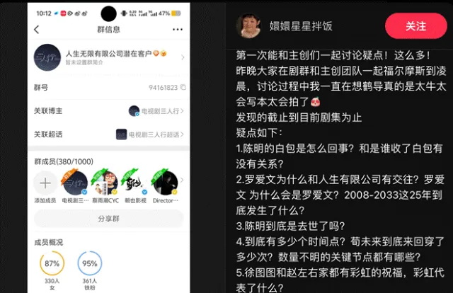 作为一部带有时空穿越色彩的剧,不少剧迷已经开始用放大镜观剧,试图破译剧中埋藏的伏笔和彩蛋。到现在,朝也影视组建的群“人生无限有限公司潜在客户”人数已经突破了700人。观众与主创之间的墙壁,正在被这些仔细而真诚的讨论慢慢打破。