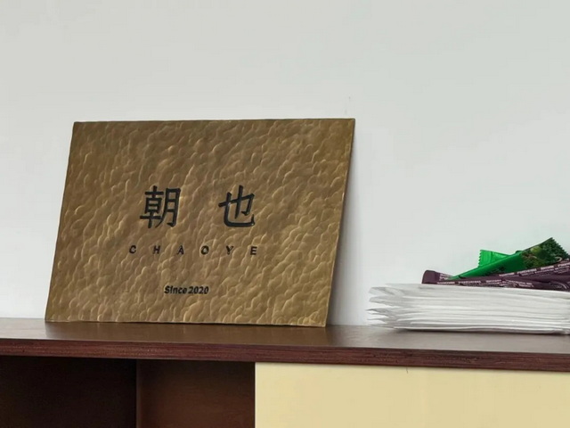 采访当天,蔡雨潮办公室里“朝也”的牌匾