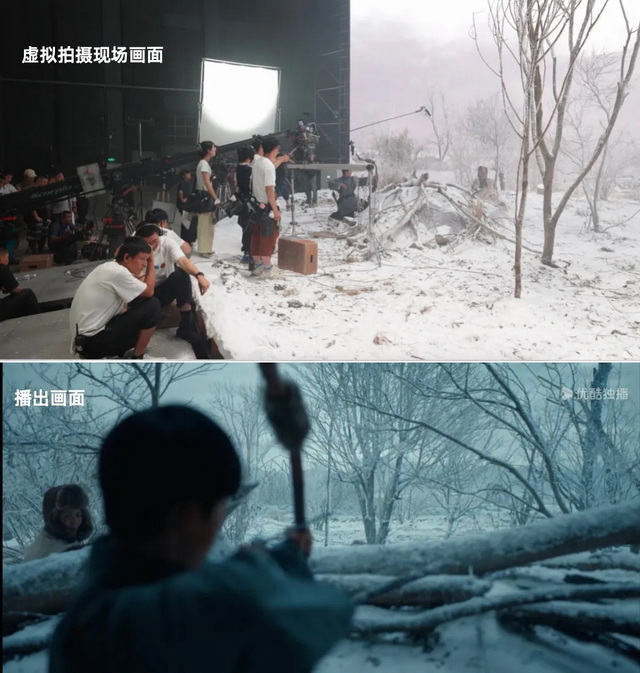 结合技术的创作,本就是对提高制作效率的一种回应。虚拟拍摄相比纯实拍,缩短了至少1个月的前期置景和1个月的后期特效时间;集成5G、AI的“豹款影视车”则让外景转场效率提升超15天。另外,技术提供了更适宜的艺术表达手段。例如,通过虚拟拍摄营造的氛围压迫感,《反人类暴行》光学的运用以及心理惊悚氛围的营造,在历史真实与艺术创作中找到了平衡。