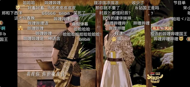 由付航串场的搞笑新闻播报,有着类似于《周六夜现场》一样的形式,一边播报搞笑新闻,一边大量与现场互动;小时候在联欢会上常常看到的杂技节目,也被B站玩出了新花样——叠加了美食元素的杂技,和扮成灶王爷形象的土豆在喊麦。call back了他在喜人节目《世纪2000大舞厅》里的表现。