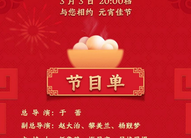 正月十五闹元宵,花好月圆人团圆。3月3日晚8点档,中央广播电视总台《2026年元宵晚会》秉持欢欢喜喜闹元宵的主旨,突出和美、团圆色彩,将携歌舞、戏曲、小品、相声、魔术等各类型节目,陪伴全球华人和海外朋友共度元宵佳节。